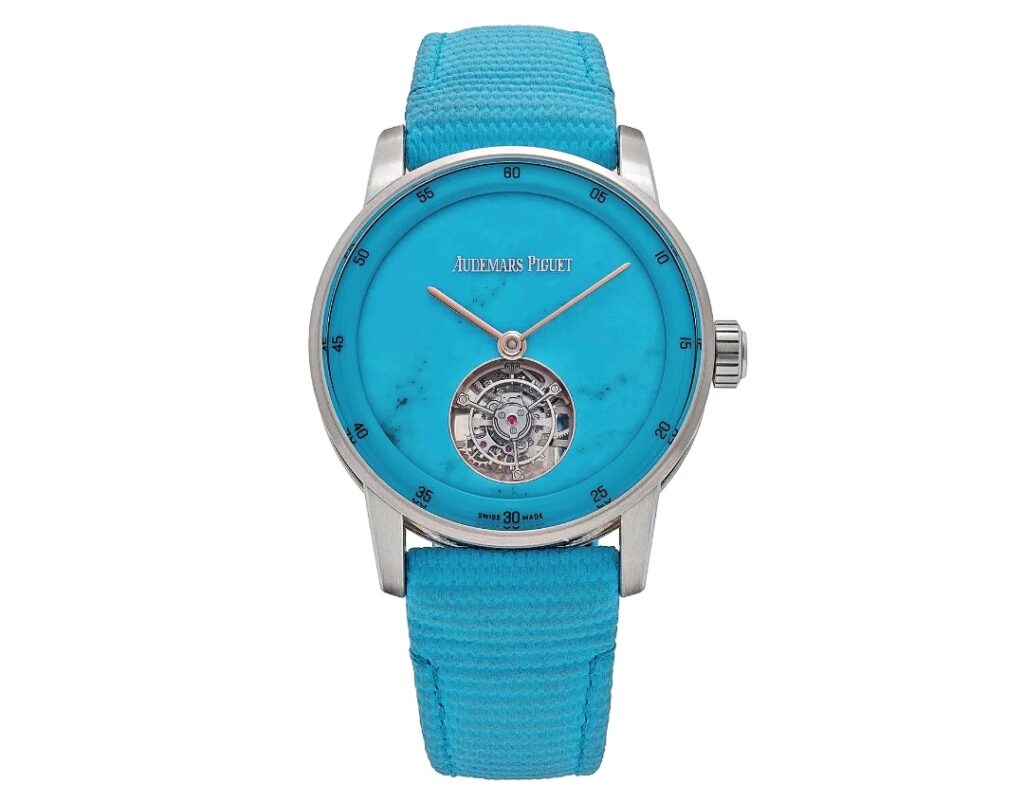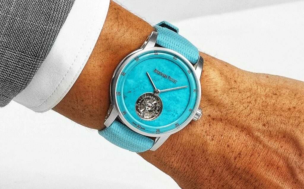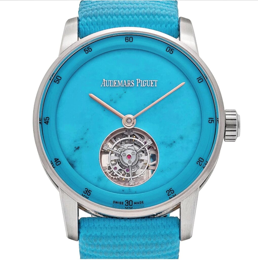 The Audemars Piguet Code 11.59 Turquoise Dial Tourbillon is a remarkable fusion of gemstone artistry and mechanical brilliance. With its tranquil yet powerful dial, floating tourbillon, and ultra-limited production, it represents a bold chapter in modern haute horology.